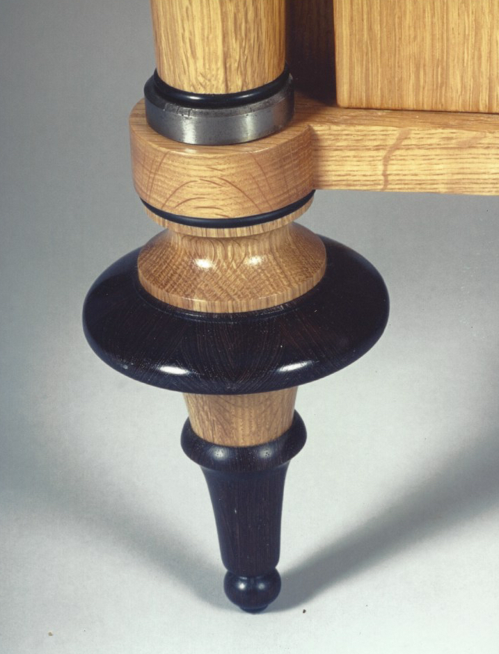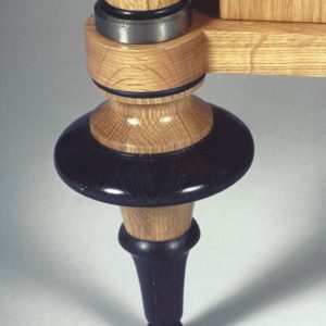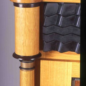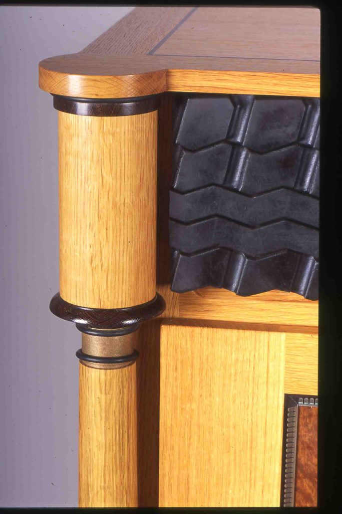 Oak, wenge, burl eucalyptus, tire tread, o-rings, found objects.